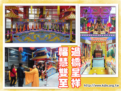 相傳為周朝姜子牙創造七星平安橋,過橋能驅邪禳禍。鑑此,本廟特設「納福七星平安橋」,並於橋前擺設有桃劍、柳枝,橋面舖設七星燈,橋上安奉本廟「關聖帝君」,橋後則奉有「福祿壽星君」,為過平安橋的善信祈福平安,消災解厄。